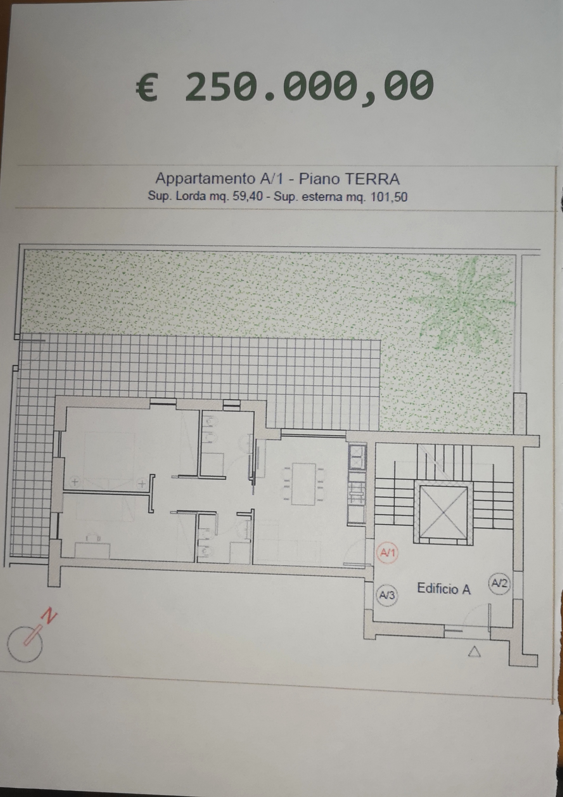 A1 285.000,00 RIBASSATO € 250.000,00 [appartamento 59,40+giardino 101,50]